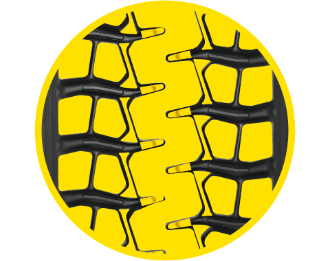 连续的Z字纵向花纹;大花纹块辅以加强筋