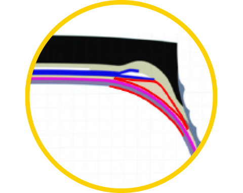 优化的四层带束层结构设计,均衡 轮胎接地压力,提高接地矩形率 采用耐刺扎、抗撕裂并兼顾耐磨的 胎面新配方