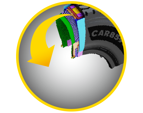 优化带束层结构,采用3+0°结构,同时优化带束层宽度,给予肩部花纹块更强支撑,抗掰边能力更好