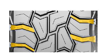 花纹块双边缘接地设计 阶梯状的双边缘设计,使轮胎拥有更大的抓地面积,提升牵引力
